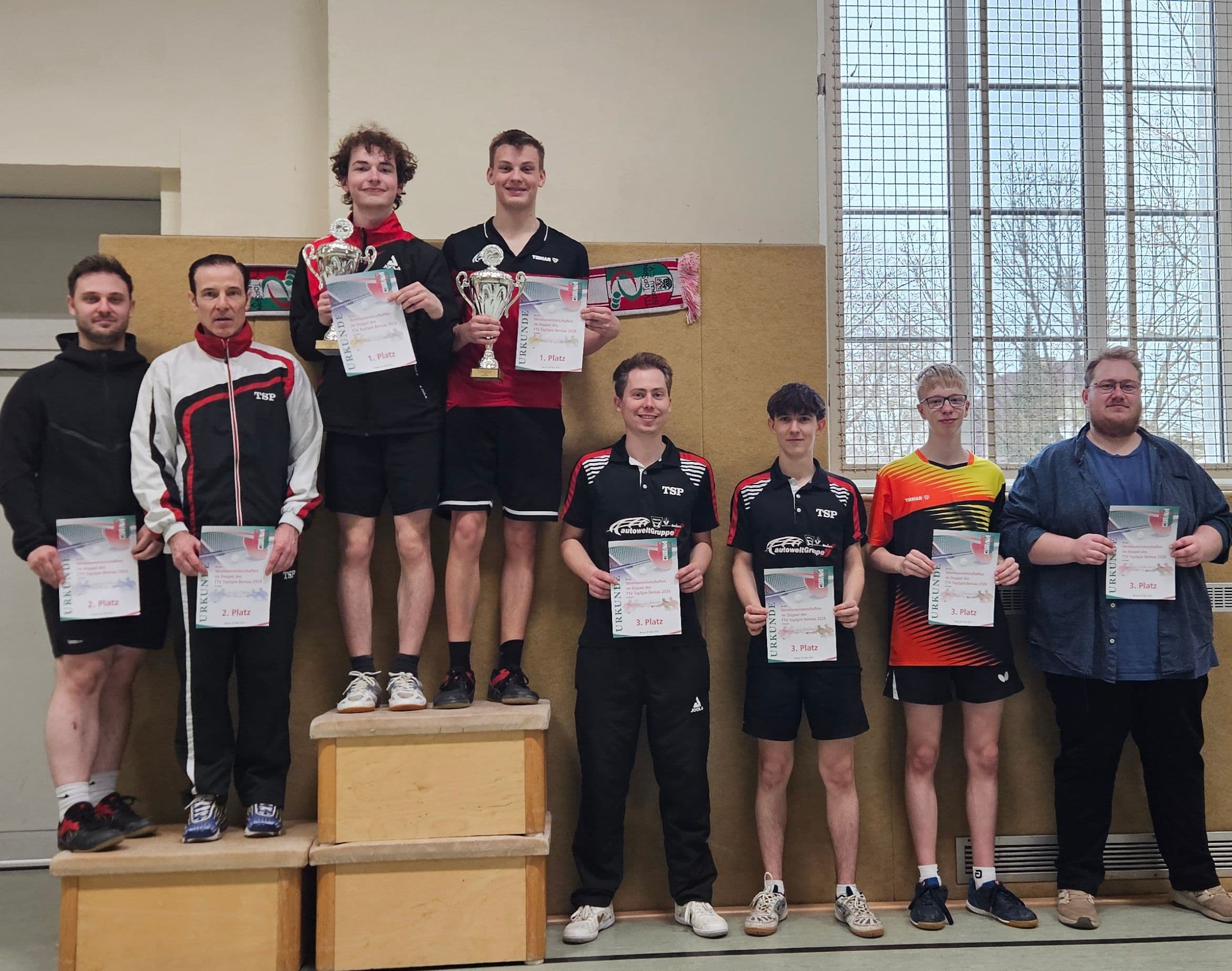 Auch in diesem Jahr fand traditionell unsere Doppel-Vereinsmeisterschaft im Frühjahr statt. Nach der Vorrunde und drei Runden im K.O.-System standen die Sieger fest. Platz 1 belegten Felix Beck und Leeroy Hellwig, die souverän das Turnier dominierten. Der 2.Platz ging an das Vater-Sohn-Duo Silvio und Pascal Krista und den 3.Platz teilten sich Felix Wunderwelt/Alexander Bohm und Emil Klar/Johannes Wendering. Im Anschluss belohnten sich alle noch am Grill und spielten einige Runden am Vierertisch🏓