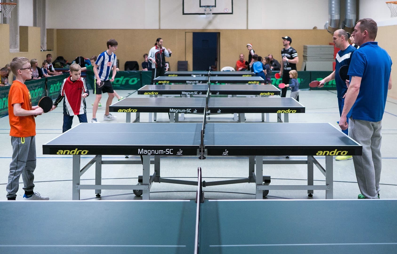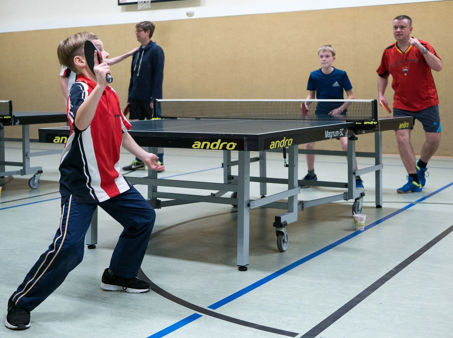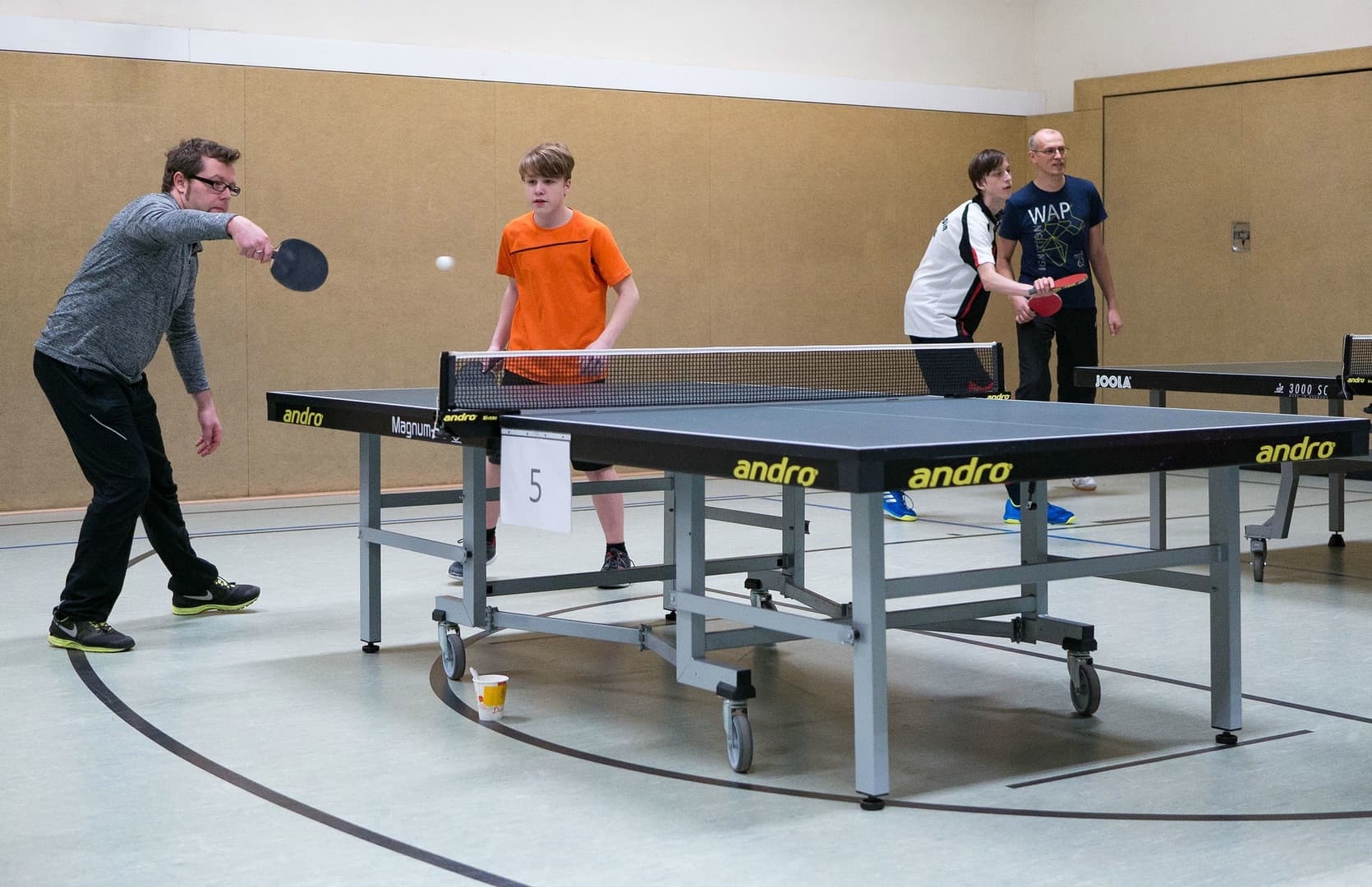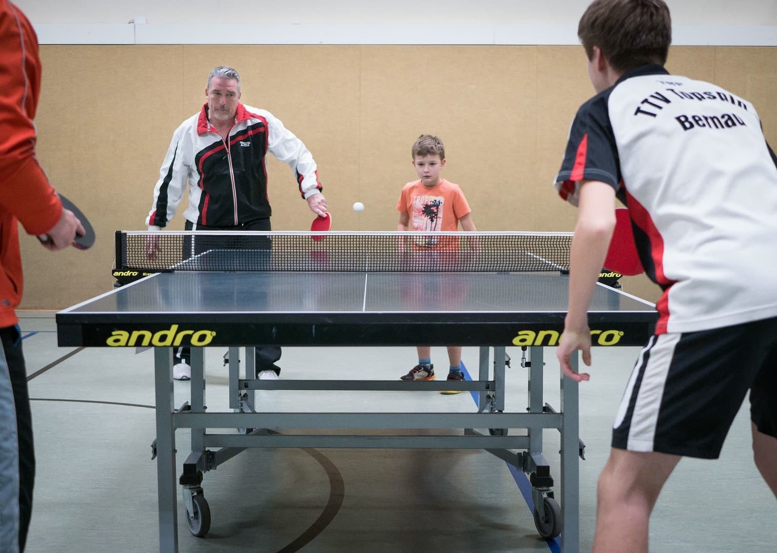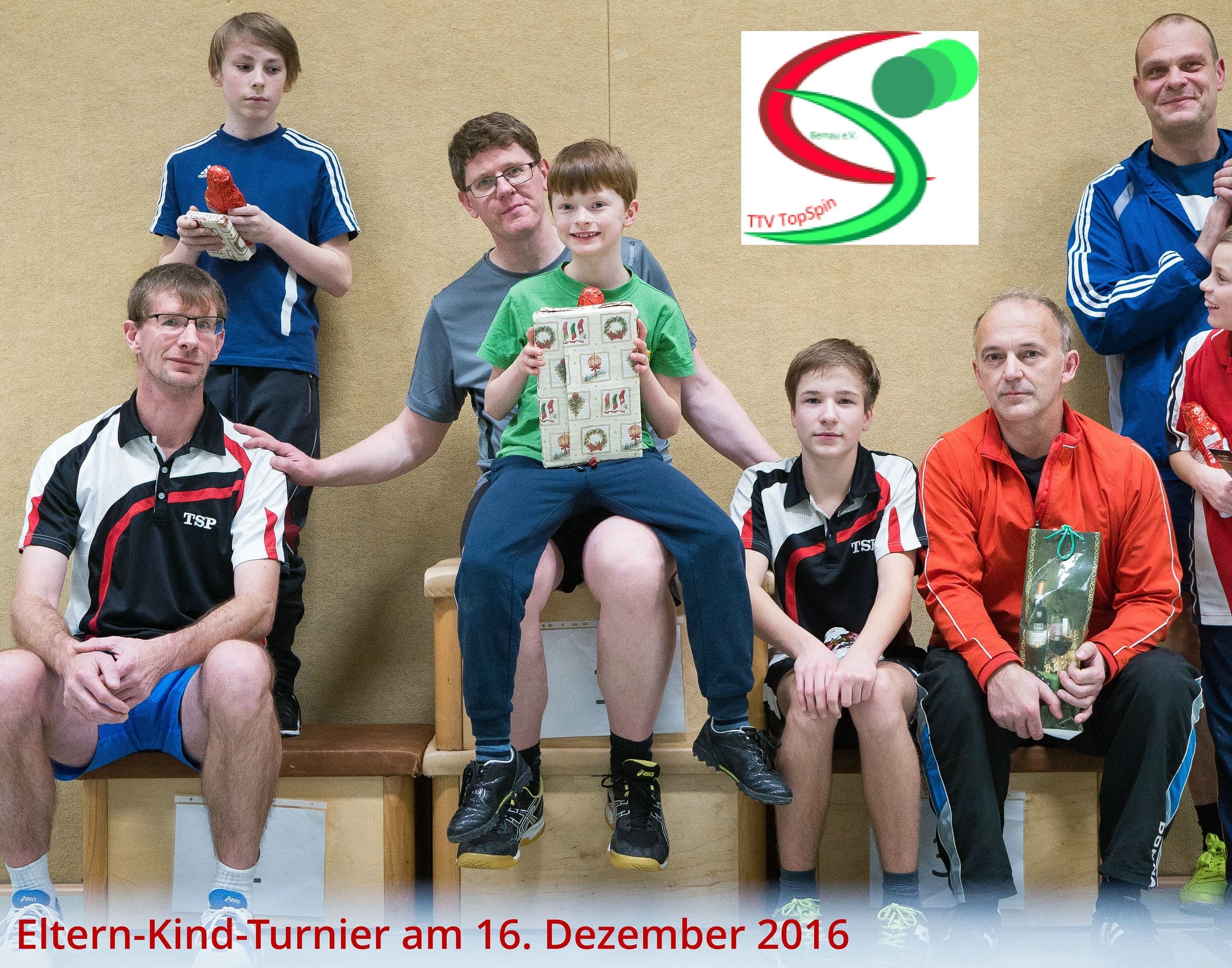 Das Trainerteam von TTV TopSpin Bernau e.V. bedankt sich ganz herzlich für die gute Beteiligung am Eltern-Kind-Turnier. Mit 16 Doppelpaaren haben wir am Freitag, den 16.12.2016 zuerst eine Gruppenphase mit vier Vierergruppen ausgespielt. Danach folgend wurden jeweils die beiden besten Teams einer Gruppe in das obere KO-System gezogen und die Dritt- und Viertplatzierten in das untere KO-System geschoben. Nun wurden die Plätze von 1 bis 16 ausgespielt.