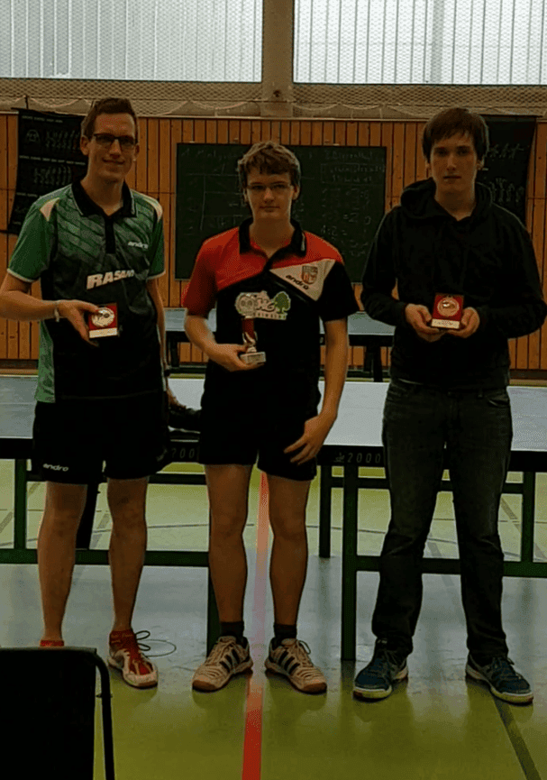 Für unsere Herren war ein deutlich größeres Programm vorgesehen. Unsere 13 Sportler mussten in 9 Gruppen um die ersten beiden Plätze kämpfen, damit sie sich für die Zwischenrunde qualifizieren. Hier konnte besonders Jens Buttkau überzeugen, der unser ehemaliges Vereinsmitglied Thomas Kolling in 5.Sätze bezwingen konnte und damit Gruppenerster wurde. Desweiteren erreichten Alexander Nowak, Marc Müller, Marcel Kohlmann, Uwe Reisner, Silvio Krista und unser neues Vereinsmitglied Sascha Kiank durch 2.Plätze in der Gruppe die Vorschlussrunde. Ärgerlich war die Niederlage von Felix Wunderwelt gegen Louis Bath (9:11 im Entscheidungssatz), der damit leider nur dritter wurde. Die verbliebenen 7 Bernauer spielten nun in 3 Sechsergruppen, wo sich wieder die besten beiden für die Finalgruppe qualifizierten. Hier war leider bei den meisten Endstation. Bei Jens und Marc wäre bei einer anderen Gruppenkonstellation mehr drin gewesen. So verabschiedeten sie sich leider auch aus der Runde der letzten 18. Doch mit Sascha Kiank hatten wir noch ein heißes Eisen im Feuer, der es durch viele Nervenstarke 5.Satzsiege in die Finalrunde der letzten 6 schaffte. In der Zwischenrunde gewann er gegen Andreas Sawinsky aus Melchow/Grüntal, was für die Finalrunde übernommen wurde. Nun zeigte er, mit seiner mutigen Spielweise sein können und gewann gegen Tom Heine (3:2) und Stephan Pauli (3:1) aus Finow. Lediglich gegen die Verbandsoberligaspieler Johann Toll (2:3 und 9:11 im Entscheidungssatz) und Landesligaspieler Johannes Gohlke (2:3) aus Finow musste er sich knapp geschlagen geben. Sodurch erreichte er letztendlich nach 8 Stunden und 12 Spielen einen starken 3.Platz. Herzlichen Glückwunsch.
