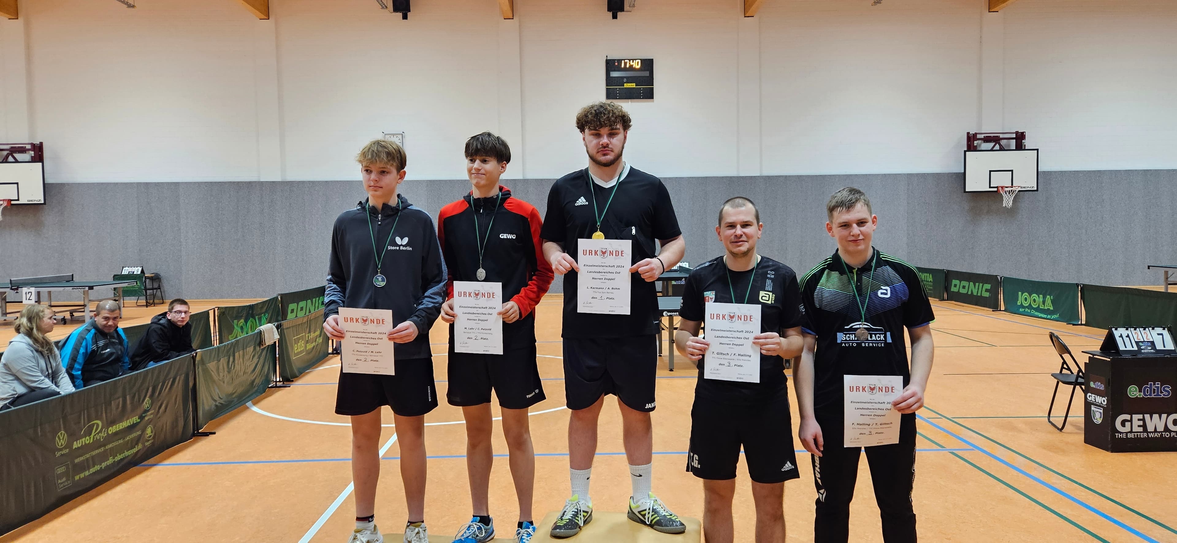 Im Doppelwettbewerb konnten Lukas und Alex die vier K.O.-Runden alle überstehen und gewannen im Finale gegen Charlie Petzold (TTV Fürstenberg) und Mika Lehr (Bernauer TTC) mit 3:0.