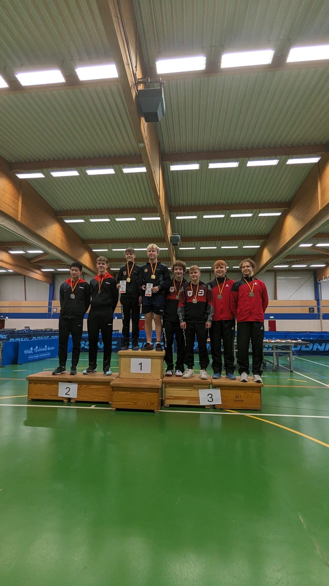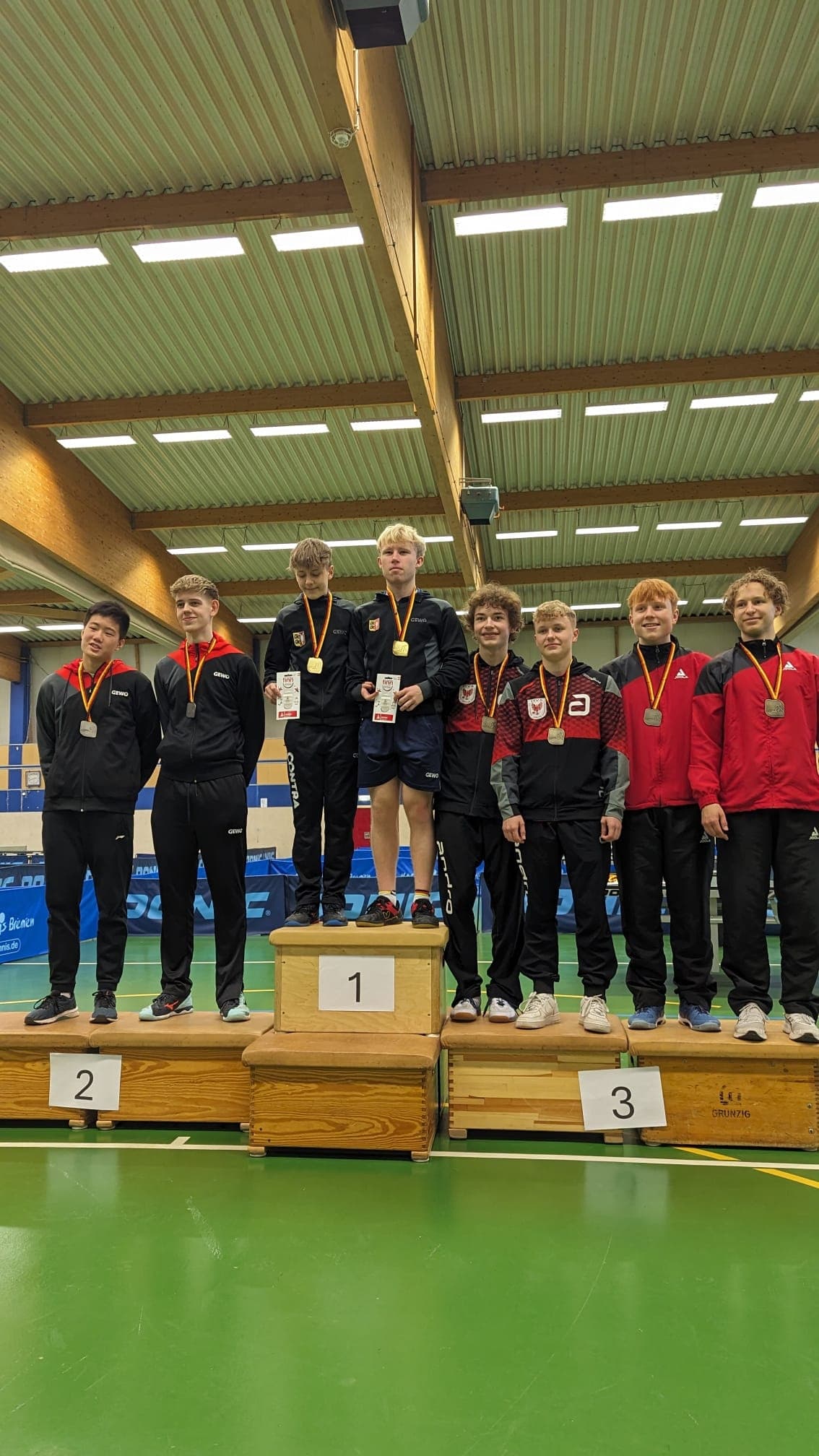 Vor knapp 2 Wochen hat unser 17 jähriger Spitzenspieler der 1.Mannschaft Felix Beck (TTR 1799) bei der Norddeutschen Meisterschaft (Jungen 19) für den Tischtennis-Verband Brandenburg in Bremen, zusammen mit unserem Trainer Jannis Stefanidis, teilgenommen. Bei seiner ersten Teilnahme an einem überregionalen Wettkampf konnte er im Einzel ein Gruppenspiel gegen Maximilian Hesslau (FTTB) mit 3:2 (8:11 11:13 11:8 11:9 11:7) gewinnen.