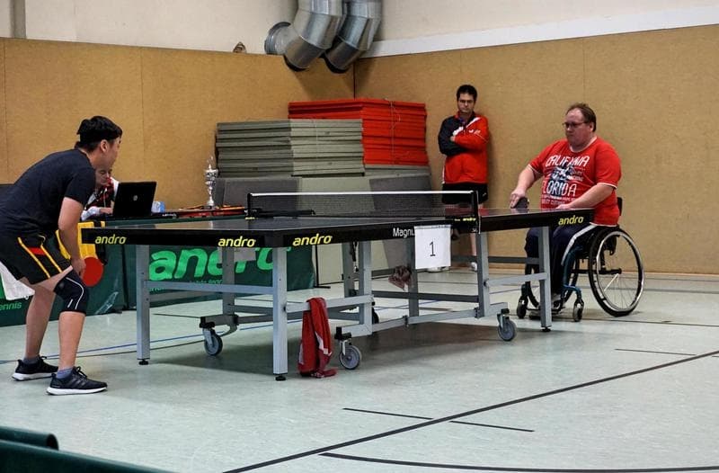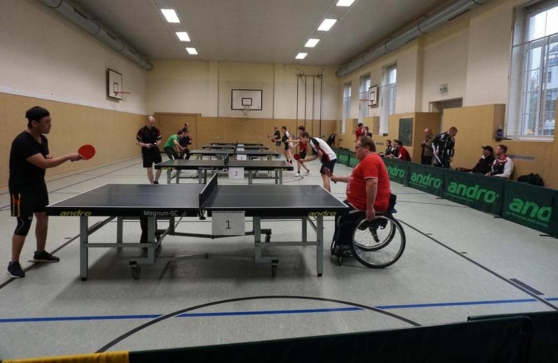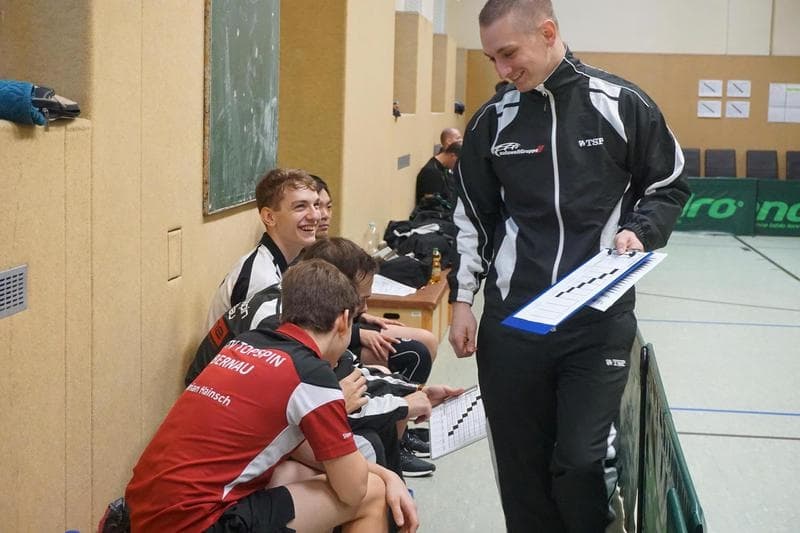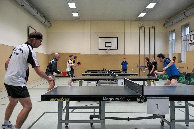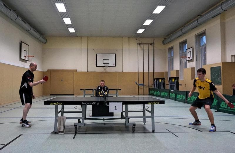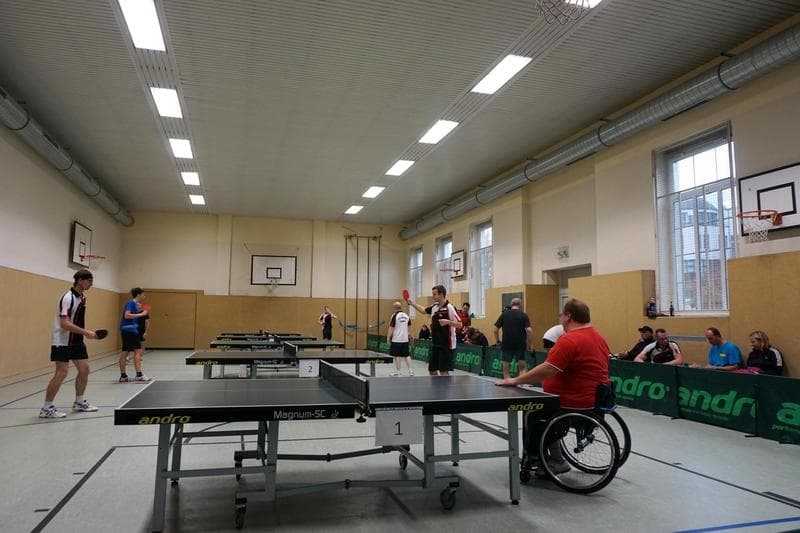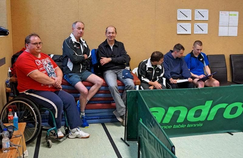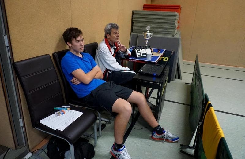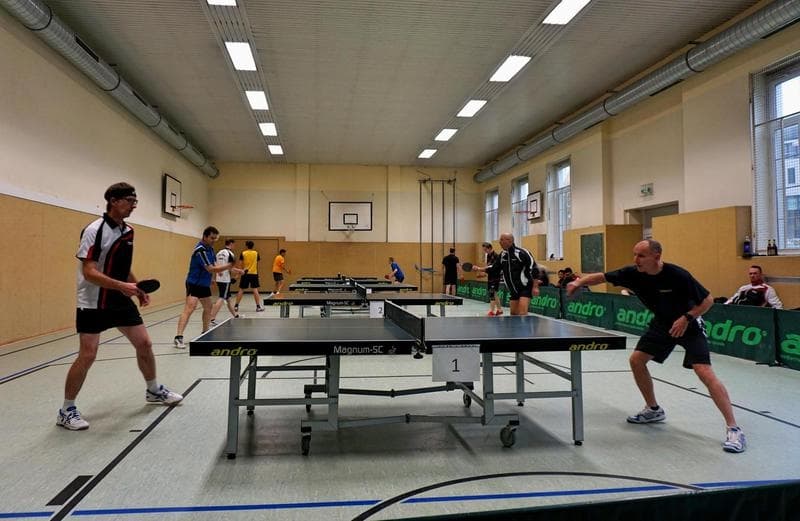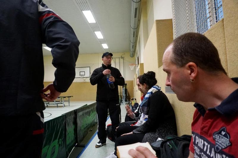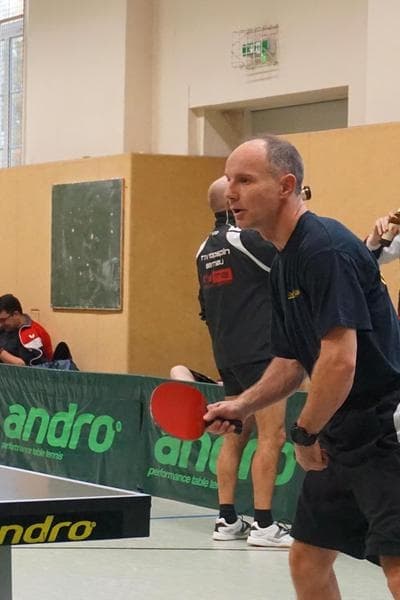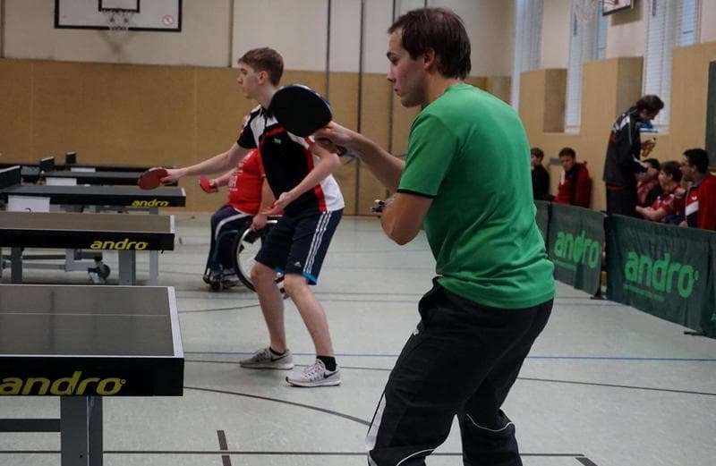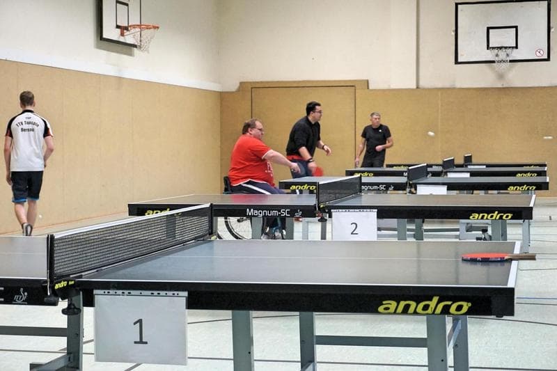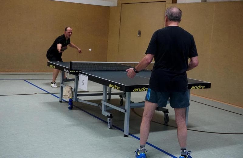 Die 4 Viertelfinalspiele gingen dann alle recht deutlich aus. Im Duell der 1.Mannschaft gewann Sascha Ki. gegen Marc, im Duell der 2.Mannschaft Jens gegen Alex, Andreas gewann gegen Fabian und Helen siegte gegen Steve. Somit spielten Sascha Ki, Jens, Andreas und Helen die Podestplatzierungen aus. Im ersten Halbfinale spielte Sascha gegen Jens. Dabei gewann Sascha die ersten beiden Sätze souverän und lies schon vermuten, dass er das Match deutlich gewinnen wird. Doch dann zeigte Jens sein können, gewann den 3.Satz und konnte den 4.Satz nach 4:9 und 7:10 noch 12:10 gewinnen. Der letzte Satz war nochmal sehr umkämpft, wurde dann aber doch von Sascha gewonnen, der damit ins Finale einzog. Im anderen Halbfinale spielten Helen und Andreas um das zweite Finalticket. Hier setze sich in drei knappen Sätzen Andreas durch. Damit erreichten Jens und Helen den 3.Platz.