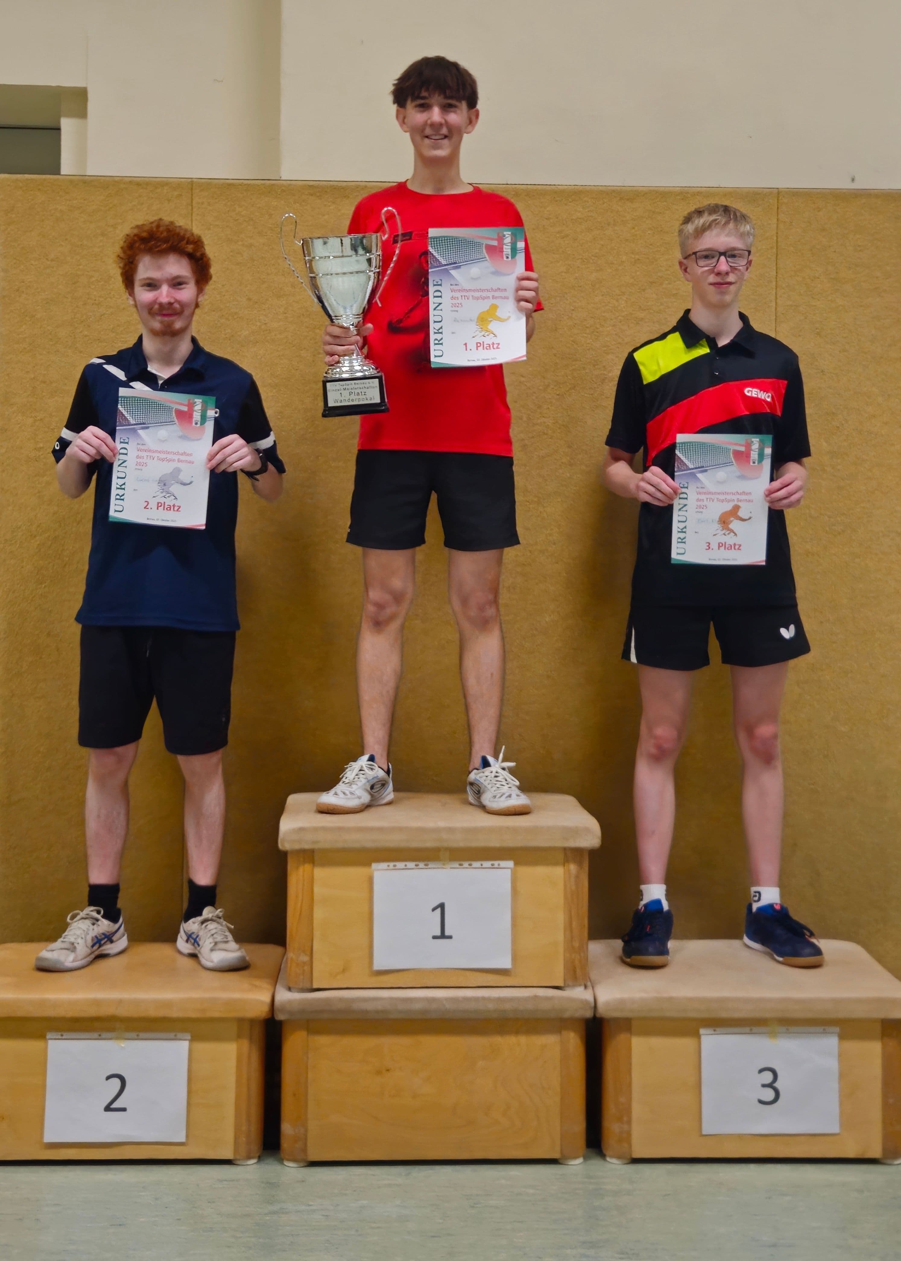 Am Freitag, den 03.10.2025 fanden unsere diesjährigen Vereinsmeisterschaften der Erwachsenen im Einzel statt. Daran nahmen 24 Teilnehmer dran teil, die in vier 6er-Gruppen um den Einzug in die K.O.-Runde spielten. Was wieder mal sehr schön war, war das auch viele Nachwuchsspieler beim Erwachsenenturnier dran teilnahmen, was sich später auch auf dem Podium bemerkbar machte.