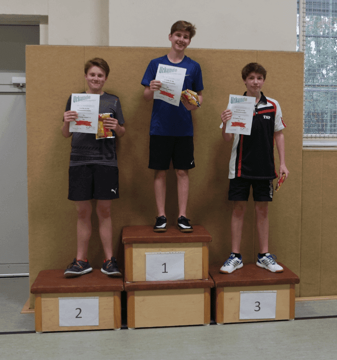 Das Turnier unsere jungen Sportfreunde hat erfolgreich am Samstag den 08 Oktober stattgefunden. Mit einer Beteiligung von 13 Sportlern, wurde in zwei Altersklassen um den Titel des Vereinsmeisters gespielt. In der Altersklasse > 12 Jahre sowie in der Altersklasse < 12 Jahre wurde mit einer Gruppe Jeder gegen Jeden die Platzierungen ausgespielt.