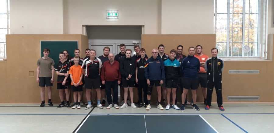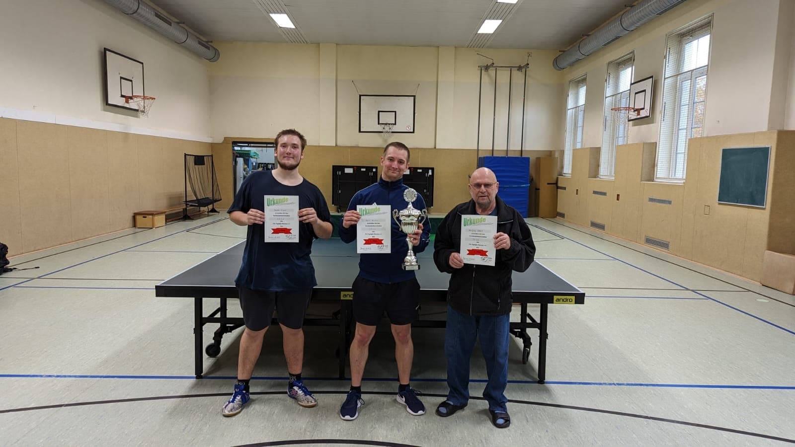 Es war wieder mal Turnierzeit in unserer Halle. Den Anfang machten am Samstag die Erwachsenen. Unter den 20 Teilnehmern waren auch schon 6 Nachwuchsspieler mit dabei. In vier 5er-Gruppen führte es für manche zum Einzug ins Viertelfinale und für manche auf den Weg zum Grill, welcher pünktlich zum Abschluss der Vorrunde schon gut in die Halle reinduftete. Mit jeder Runde reduzierten sich nicht nur die Vorräte an feinstem Eberswalder Grillgut und guten Thüringer Erfrischungsgetränken, sondern zugleich die Tischzahl, sodass im Endspiel auch nur noch ein Tisch in der Hallenmitte stand. Ein würdiger Rahmen für ein spannendes Finale war somit geboten und es sollte auch folgen. Marc schaffte nach 1:2 Satz- und 8:10- Punkterückstand noch die Wende und gewann schließlich mit 3:2 gegen Sascha. Großer Sport stand auch nach der Siegerehrung noch an, denn einige hatten noch Lust, zwei weitere Stunden noch einige Runden um den Vierertisch zu laufen.